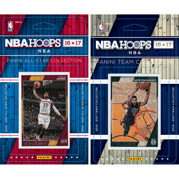 - Q: What are the main features of this trading card set? A: Key features include the 2016-17 hoops team set, the 2016-17 hoops All-Star set, and comparison stats for all the Bucks' top stars.