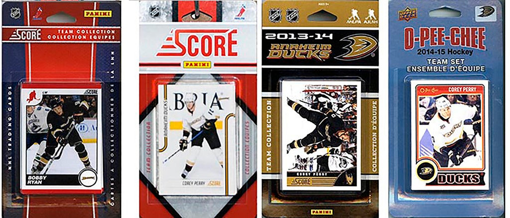 This package is a must for all Anaheim Ducks fans. You'll get Official Score NHL team sets from 2010, 2011, 2013 and a 2014 O-Pee-Chee team set featuring your favorite Ducks players.