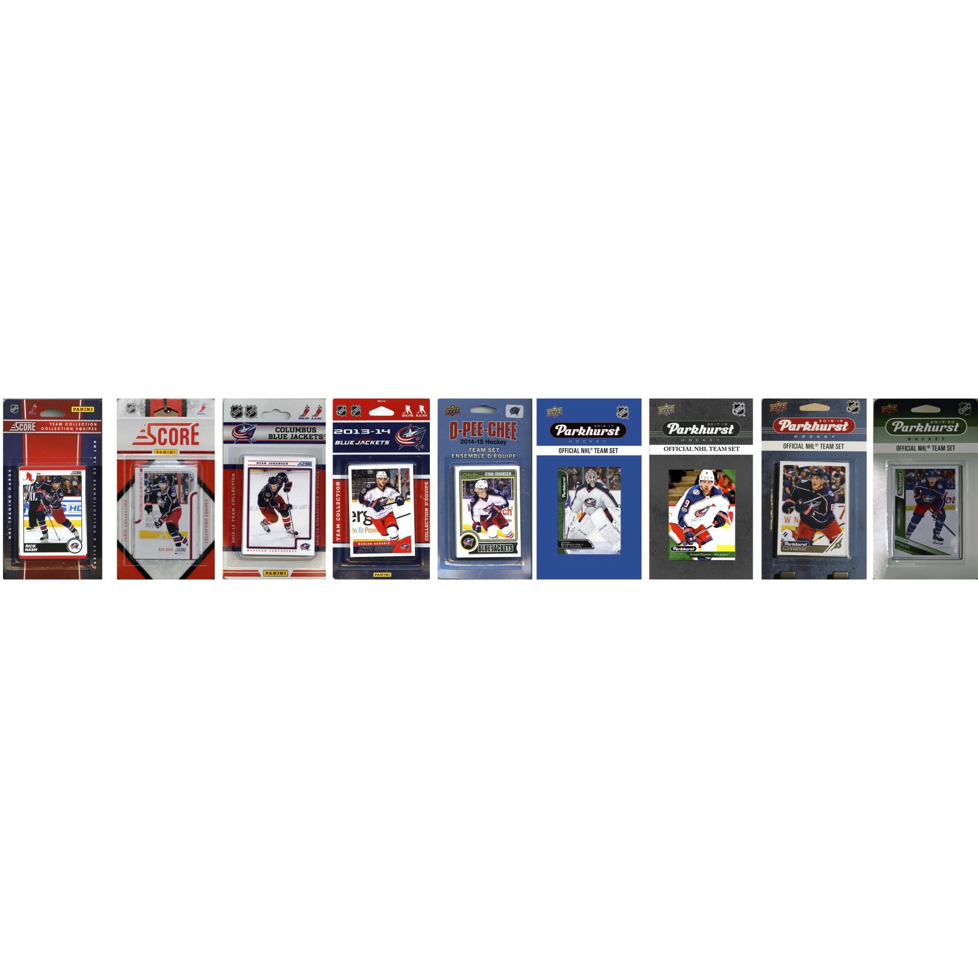This package is a must for all Columbus Blue Jackets fans. You'll get Official Score NHL team sets from 2010, 2011, 2012, 2013 and a 2014 O-Pee-Chee team set and a 2016, 2017, 2018 and 2019 Parkhurst Team Set featuring your favorite Blue Jackets players.