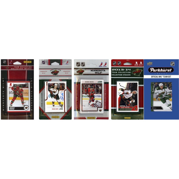 - Q: What team sets are included in this product? A: This product includes five different licensed trading card team sets for the NHL Minnesota Wild, featuring sets from 2010, 2011, 2012, 2013, and a 2016 Parkhurst Team Set.