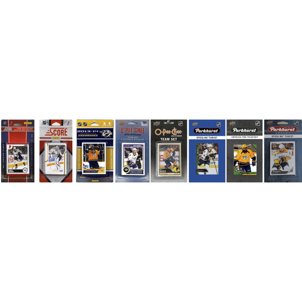 - Q: What is included in the C&I Collectables NHL Nashville Predators package? A: The package includes Official Score NHL team sets from 2010, 2011, and 2013, along with O-Pee-Chee team sets from 2012 and 2014, plus Parkhurst Team Sets from 2016, 2017, and 2018.