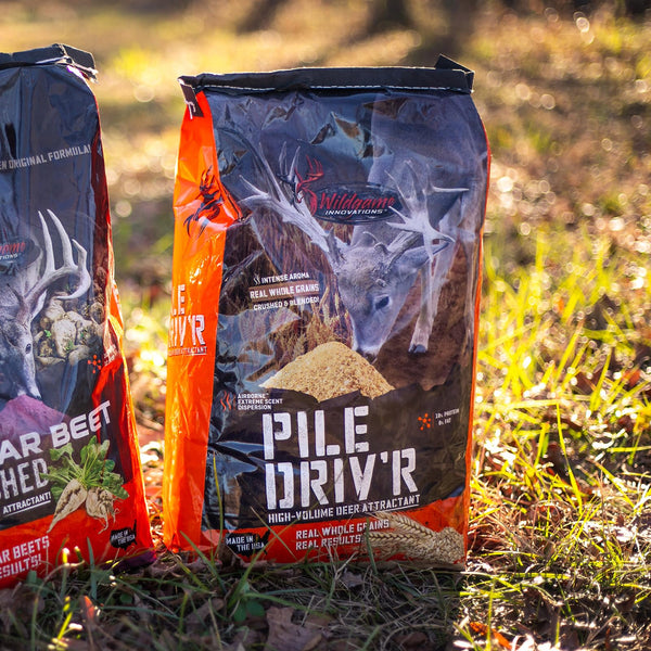 WILDGAME INNOVATIONS PILE DRIV'R DEER ATTRACTANT: Pulling whitetail deer into perfect range or putting them directly in front of your trail camera takes a little something extra. The Wildgame Innovations Pile Driv'R is a powerful and extremely affordable high-volume feed attractant that will put big bucks right where you want. The sweet and savory aroma attracts deer from long ranges and is a great option for late-season feed supplements when deer herds need it most. This hunting attractant has a high protein and fat content. In addition, Airborne Technology distributes 600% more scent molecules than ordinary feed grains. MAIN FEATURES: - Sweet and savory aroma attracts big bucks from long distances; - Highly palatable blend for ease of consumption; - Airborne Technology creates long-range scent vapor trail; - Easy additional food source for the late season; ABOUT WILDGAME INNOVATIONS: Wildgame Innovations makes products, including trail cameras, attractants, feeders, and hunting accessories for new-age hunters. We are go-getters who make results happen, no matter the odds. We strive for improvement because we want a better hunt, just as much as you do. And that passion continues to deliver better products and greater success afield, just as it has since 2002.