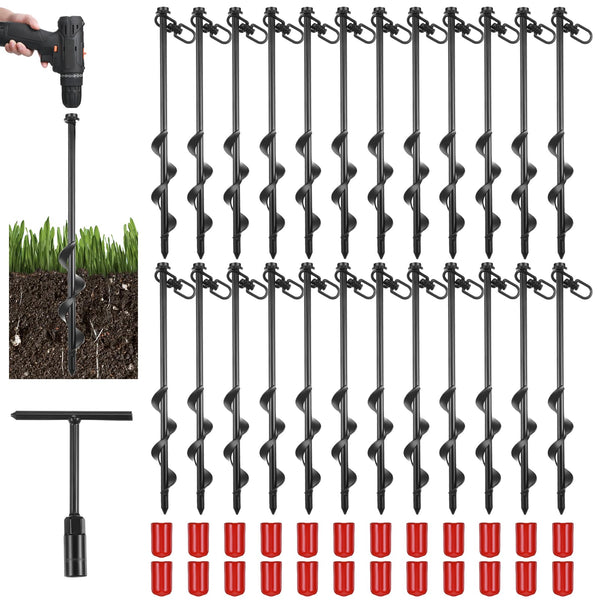 Features: Share With Others: You Can Share Tent Anchors With Your Family Members, Partners, Neighbors And Relatives, They Will Feel Satisfied And Happy When They Receive These Tools. Easy To Install: Metal Ground Anchors Are Easy To Install, We Offer You Manual Adapters And Electric Adapters, There Are 2 Installation Options For You To Choose From. Specifications: Material: Black Ground Anchors: Galvanized Heat Treated Carbon Steel Main Color: Black Size: Black Ground Anchors: 30 X 3 Cm/ 12 X 1.2 Inches Package Includes: 24 X Black Ground Anchors 1 X Power Nut Driver Drill Bit 1 X T Handle Hex Wrench Notes: Manual Measurement, Please Allow Slight Errors On Size. The Color May Exist A Slight Difference Due To Different Screen Displays. The Product Contains Sharp Parts, Please Keep Away From Children.