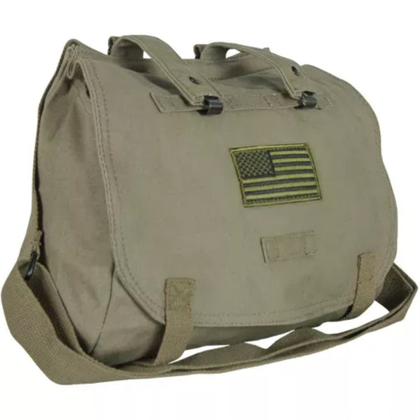 487-99598430924 Retro Hungarian Shoulder Bag With USA Emblem - Olive Drab manufactured by Fox Outdoor Products. Retro Hungarian Shoulder Bag With USA Emblem - Olive Drab Color-washed canvas Outside pocket Imprinted insignia or hook & loop patch 1 main chamber with inside compartments Adjustable shoulder strap