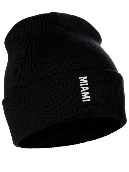 - Q: What colors are available for the Daxton Vertical USA Cities Cuffed Beanie? A: The beanie is available in a Miami Black and White color combination.