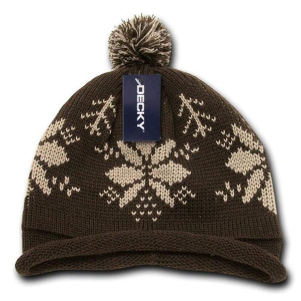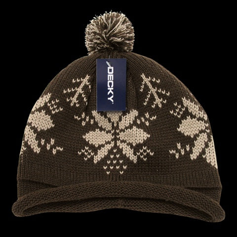 Decky 611B-Brn Snowflake Roll Up Beaine With Pom- Brown & Stain