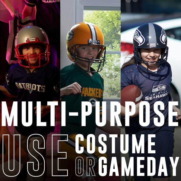 Now your child can support their favorite player or even imagine themselves as part of their favorite team with this authentic Franklin Sports NFL Deluxe Uniform set. Comes with jersey, pants, helmet and chinstrap along with iron-on numbers (#0-9). Important note: the helmet is for costume use only and should not be used in any actual game or sport capacity. The perfect gift for any child who loves football or is looking for a classic football Halloween costume to support their favorite team. Amaze and delight them with their very own NFL team jersey on game day, for trick or treating, or as part of a Halloween costume party. Customize their jersey with iron-on numbers 0-9 and let their imagination take the field as they score the winning touchdown. All NFL teams are available, including the New England Patriots, Dallas Cowboys, Philadelphia Eagles, Carolina Panthers, Minnesota Vikings, Green Bay Packers and more. Find yours and let the cheering begin! Small size is recommended for ages 4-6. Waist measures 19-22 , chest measures 20-24 , and height measures 42-47 . The youth medium size is recommended for ages 7-9 with a waist measurement of 22-25 , chest size 25-29 , and a height of 48-54 . The youth large size is recommended for ages 10-12 with a waist size of 25-28 , a chest size of 30-34 , and a height of 54-60 .