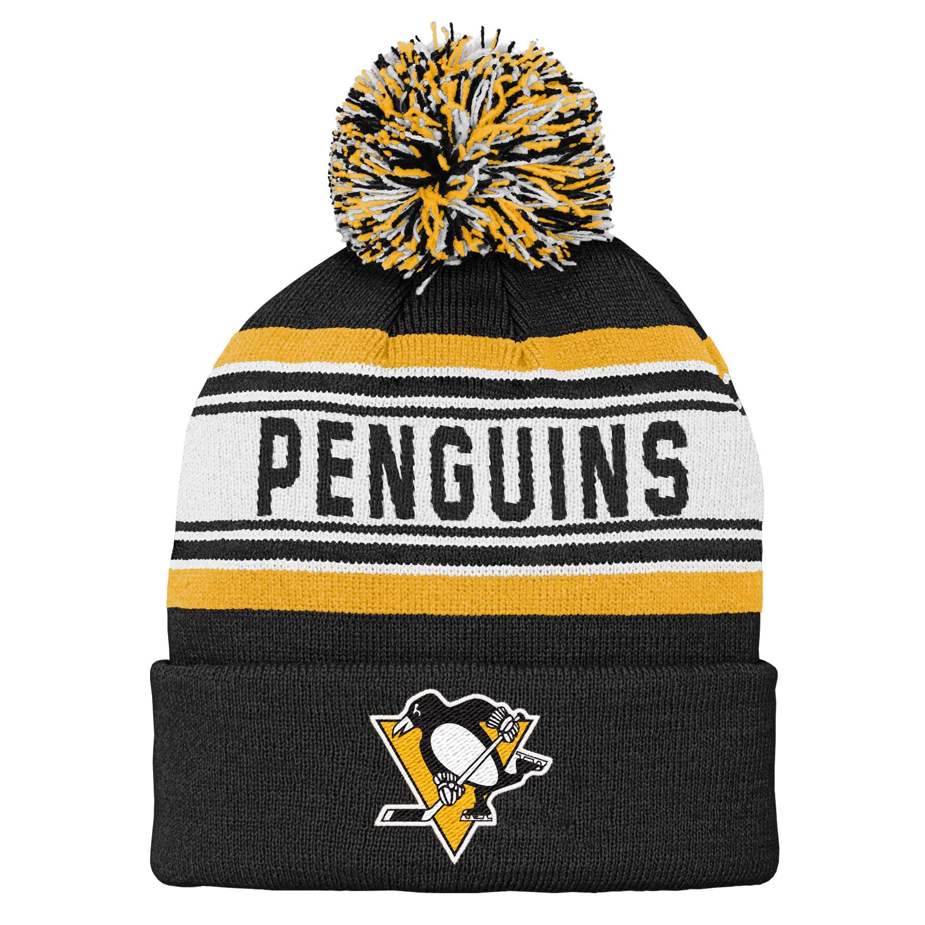Nhl Kids Youth Official Primary Logo Sport Knit Cold Weather Cuffed Pom Beanie Hat (Us, Alpha, One Size, Pittsburgh Penguins)