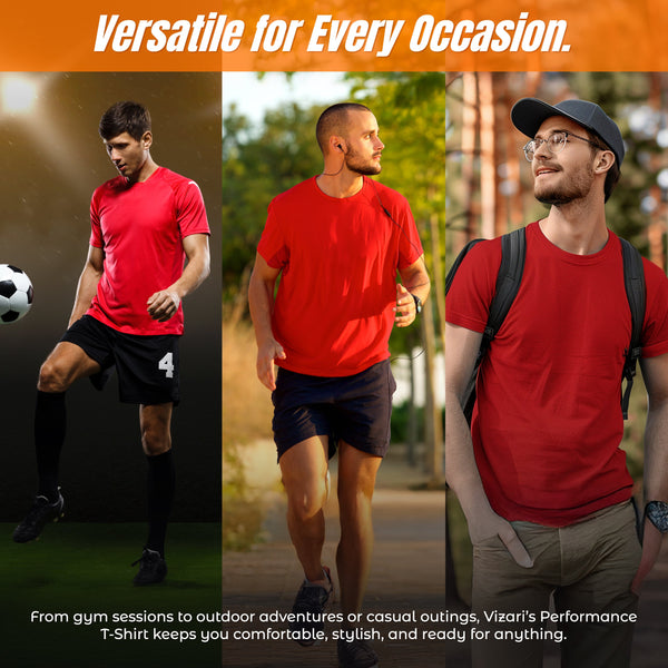 Cool and Comfy -“?Elevate your sports performance with our Red Performance T-Shirt. Crafted from quick-drying and moisture-wicking 100% polyester fabric, this shirt ensures you stay cool and comfortable during intense gameplay. The lightweight and breathable design provides optimal ventilation, making it your go-to choice for various sports activities. Whether youre on the basketball court, soccer field, or running track, this tee is your key to maintaining peak performance.