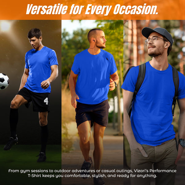 Cool and Comfy -“?Elevate your sports performance with our“?Royal Blue Performance T-Shirt. Crafted from quick-drying and moisture-wicking 100% polyester fabric, this shirt ensures you stay cool and comfortable during intense gameplay. The lightweight and breathable design provides optimal ventilation, making it your go-to choice for various sports activities. Whether youre on the basketball court, soccer field, or running track, this tee is your key to maintaining peak performance.