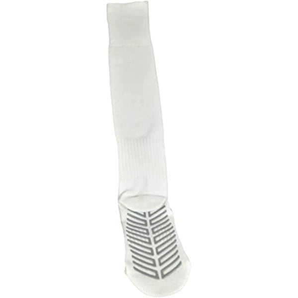 [description1]Rubber grips on the outside foot of the sock for in-shoe stability. Long sport sock to pull over shinguard. No logo on the socks. Made of 82% Nylon, 8% Polyester, 3% Elastic, and 7% Rubber.