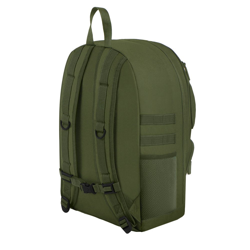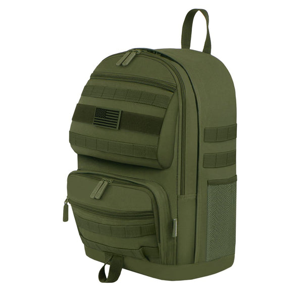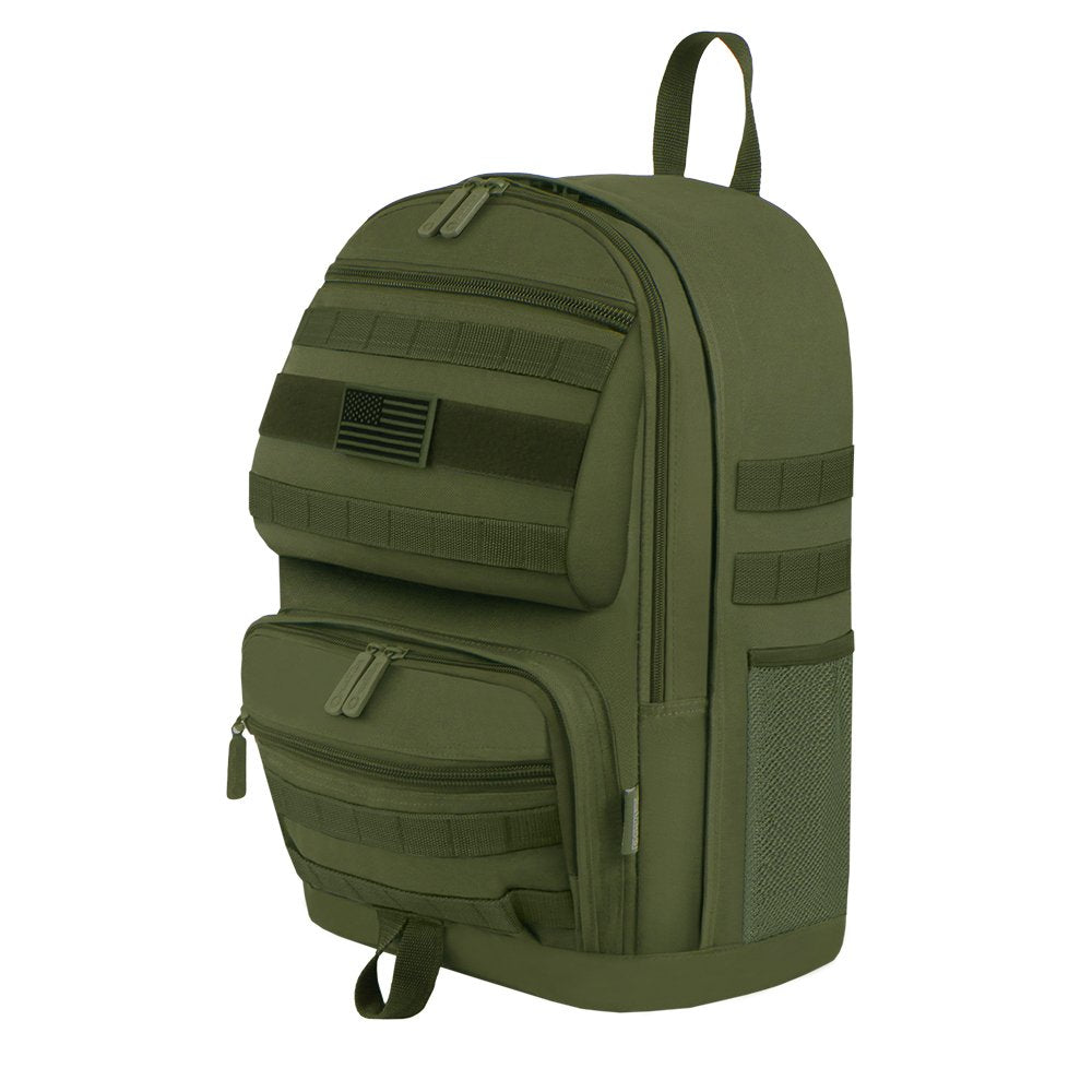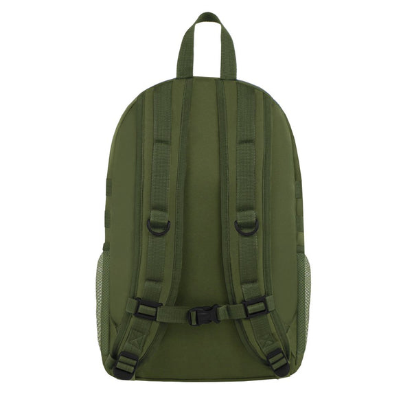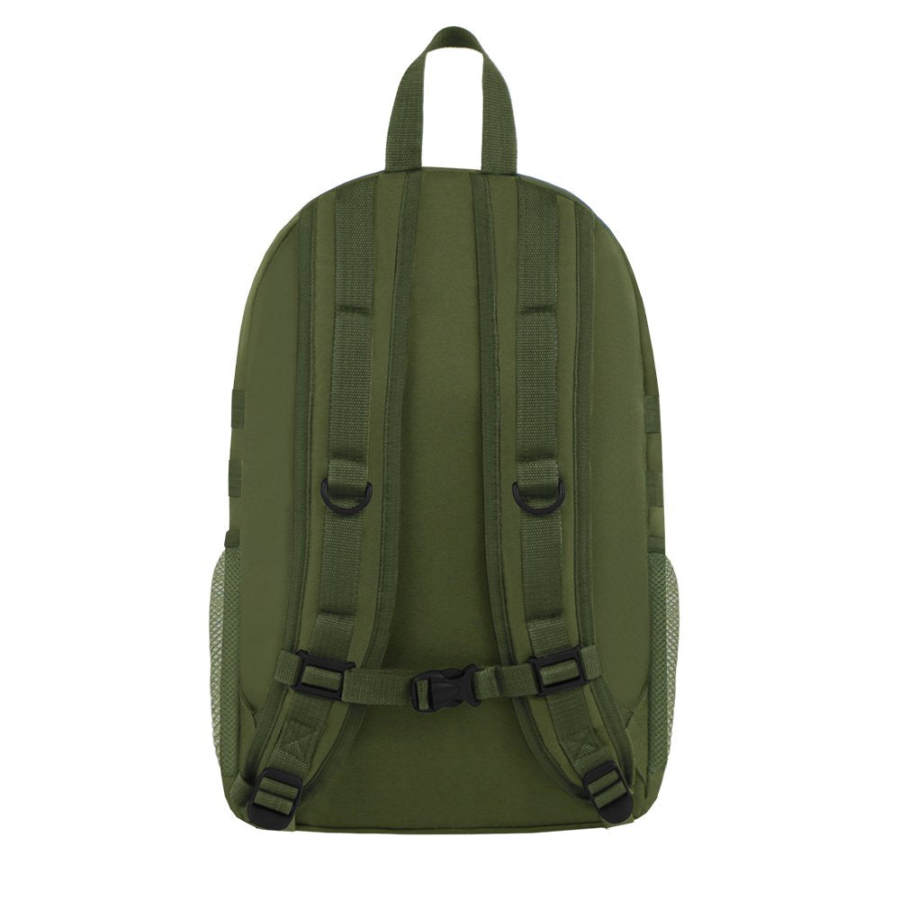 Backpack features main compartment with zip closure and shoulder straps for personalized fit. One main zipper compartments and front pockets have enough space to carry daily stuffs. Smaller mesh water bottle holder make your trip more comfortable.