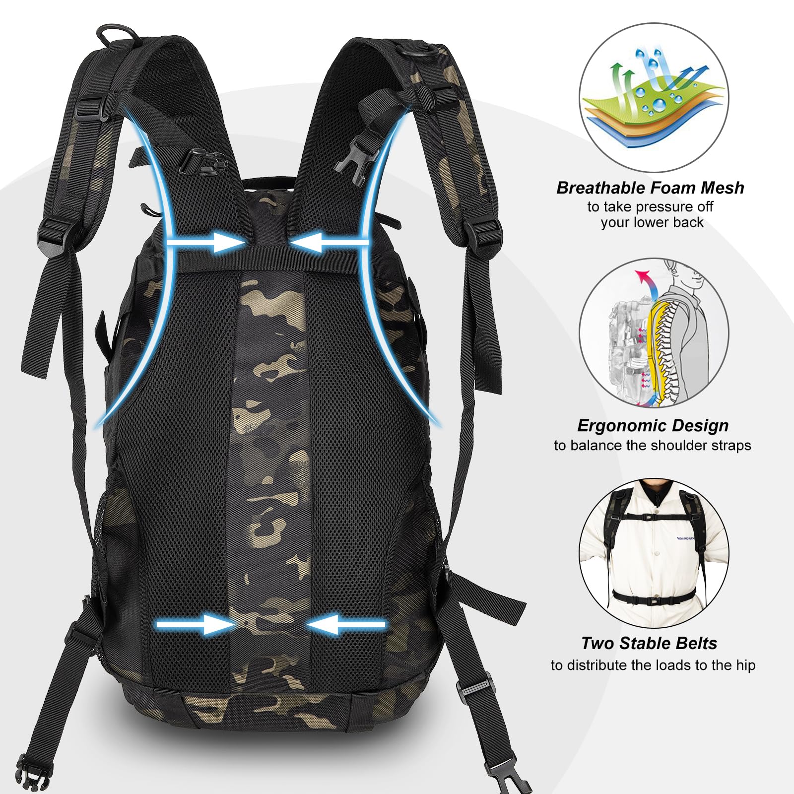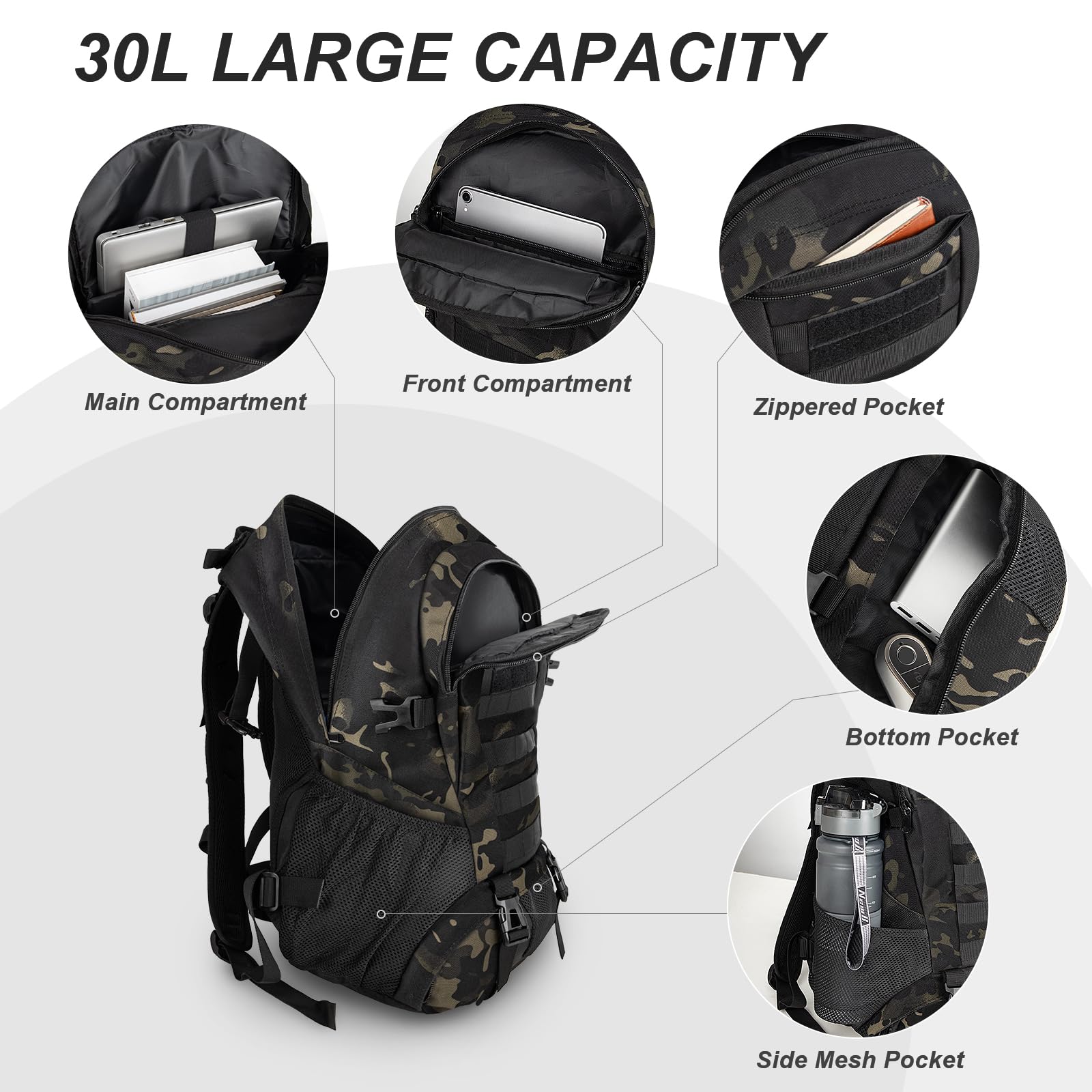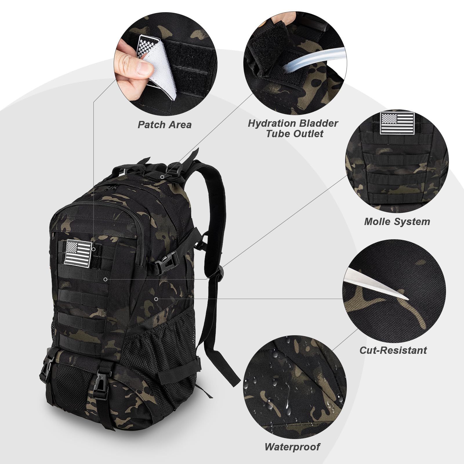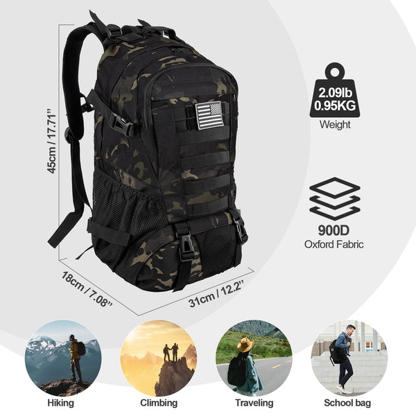 Jueachy Tactical Backpack For Men Hiking Day Pack Molle Military Rucksack Waterproof 30L Edc Bag With Usa Flag Patch Black Cp St