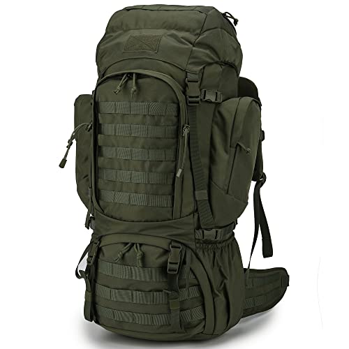 Mardingtop Tactical Backpack Military Backpack Internal Frame Molle Backpack with Rain cover for camping Hiking Trekking TravelingProduct Fetures:Modular lightweight load carrying equipment cover all around the pack,you can hang your sleeping bag,sleeping met,hammock,tent or other camping gearsPatch Area for nametape and flag patches Hiking Pole Attachment can hold hiking poles, ice ax or selfie stickA zipped pocket on the top of the pack, perfect for your rain cover (included)Hydration System compatibleThe elastic compartment that is also suitable for a 156 laptop and big enough for a 25 Liters hydration bladder or other items that require quick access Product Parameters Fabric: Water-resistant 600D PolyesterWashing & Maintenance Suggestion 1 600D polyester fabric Please do not wash with liquid detergent or bleach 2 clean with wet cloth if necessary 3 Air dry 4 Please do not iron it Package 1 X Tactical Backpack