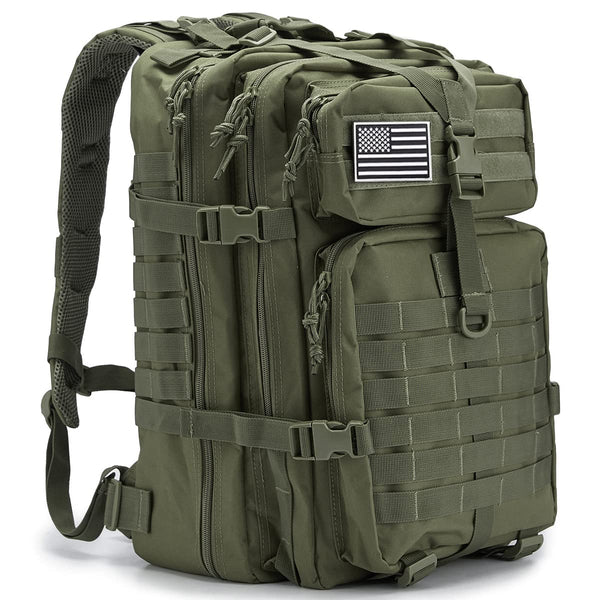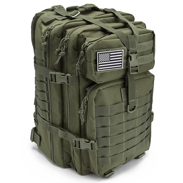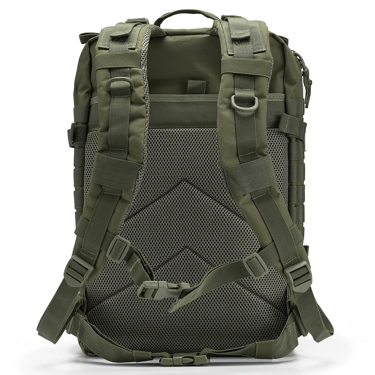 Are you frustrated by the inability to find a functional, hard-wearing, stylish backpack that can take away the outdoor? Do you often take survival adventures with friends or family? Are you 100% sure you have prepared an out-bug bag for emergencies? We've got exactly what you are looking for. We took the classic military backpack design as our starting-point, then we tested, upgraded and improved until we were satisfied that we created the fitness backpack. Today its trusted by Outdoor worker and Fitness enthusiasts. The Military backpack will take whatever you throw at it. Made from tough high-density polyester, our military backpack is large enough (18'' 13.2'' 11.6'') and has a capacity of 45 litres. it's waterproof and rip proof with lots of pockets for all your kit. Dedicated laptop/device compartment (Up to 17'') High-quality brand zips and upgraded extra-durable plastic hardware. Backpack opens flat to 180 degrees for easy packing/unpacking. All compartments have two-way openings, storm flaps and pull tabs for easy access. MOLLE design and system with front and side webbing for extra attachments. This tactical assault pack backpack can be used as bug-out bag, GYM bag, Fitness backpack, hunting backpack, 3 day assault pack, survival backpack, army backpack, trekking backpack, military rucksack and so on. ? What are you waiting for? Click ''Add to Cart'' to buy Now! ?