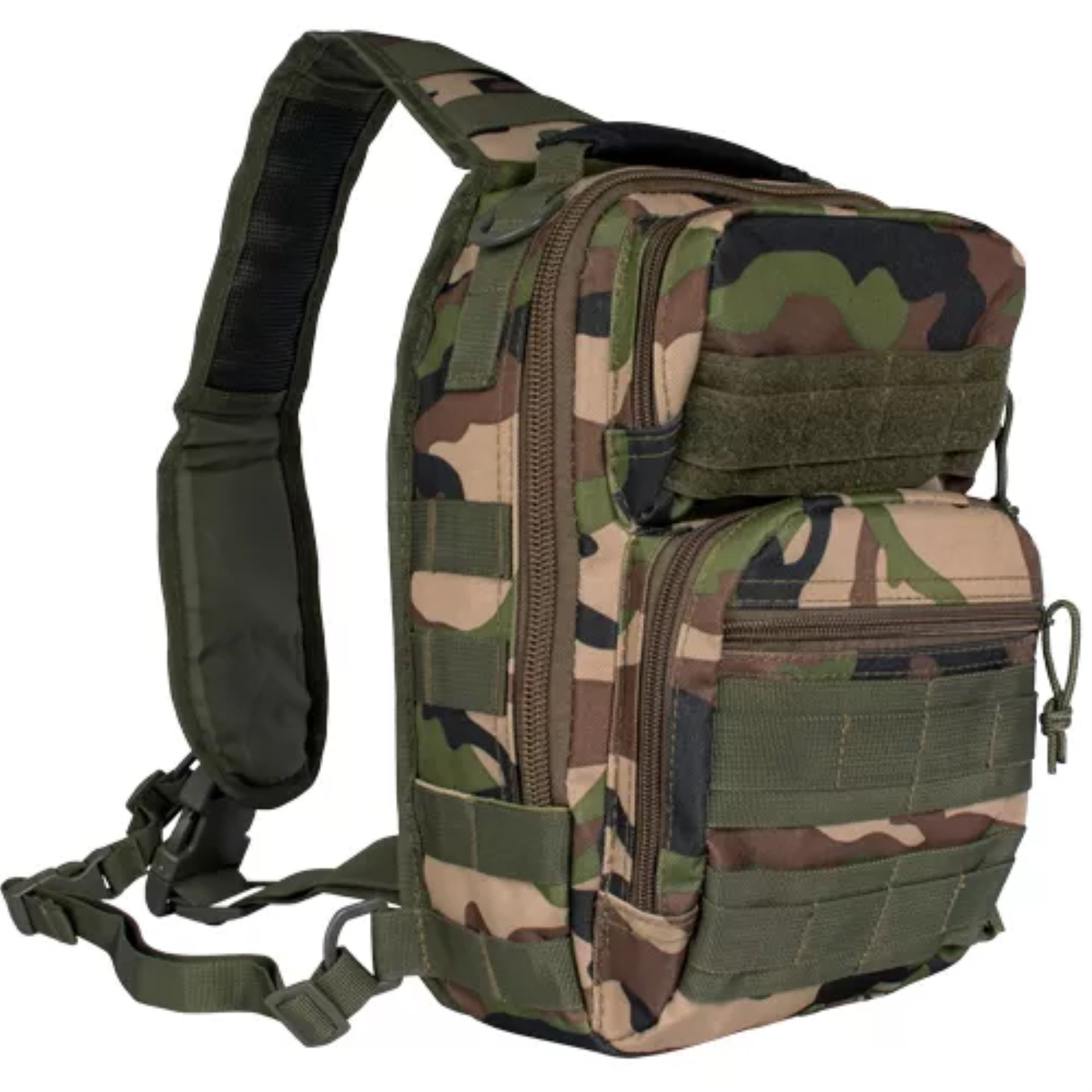 487-99598515546 Stinger Sling Bag - Woodland Camo manufactured by Fox Outdoor Products. Stinger Sling Bag - Woodland Camo. Capacity : 8 Liters / 528 Cu.In Compartments : 3 Pockets : 7 Internal / 3 External Made of Extra Heavy-Weight 600 Denier Material Main compartment with dual pocket sleeves 2 front accessory pockets for quick access Front zipper compartment on accessory pocket Padded grip handle Modular attachment points on front & sides Quick release closure waist belt Padded ambidextrous sling strap (adjustable) Padded back pocket, ideal for conceal carry Comes with a 1'' x 5'' Fox Tactical patch in matching trim color