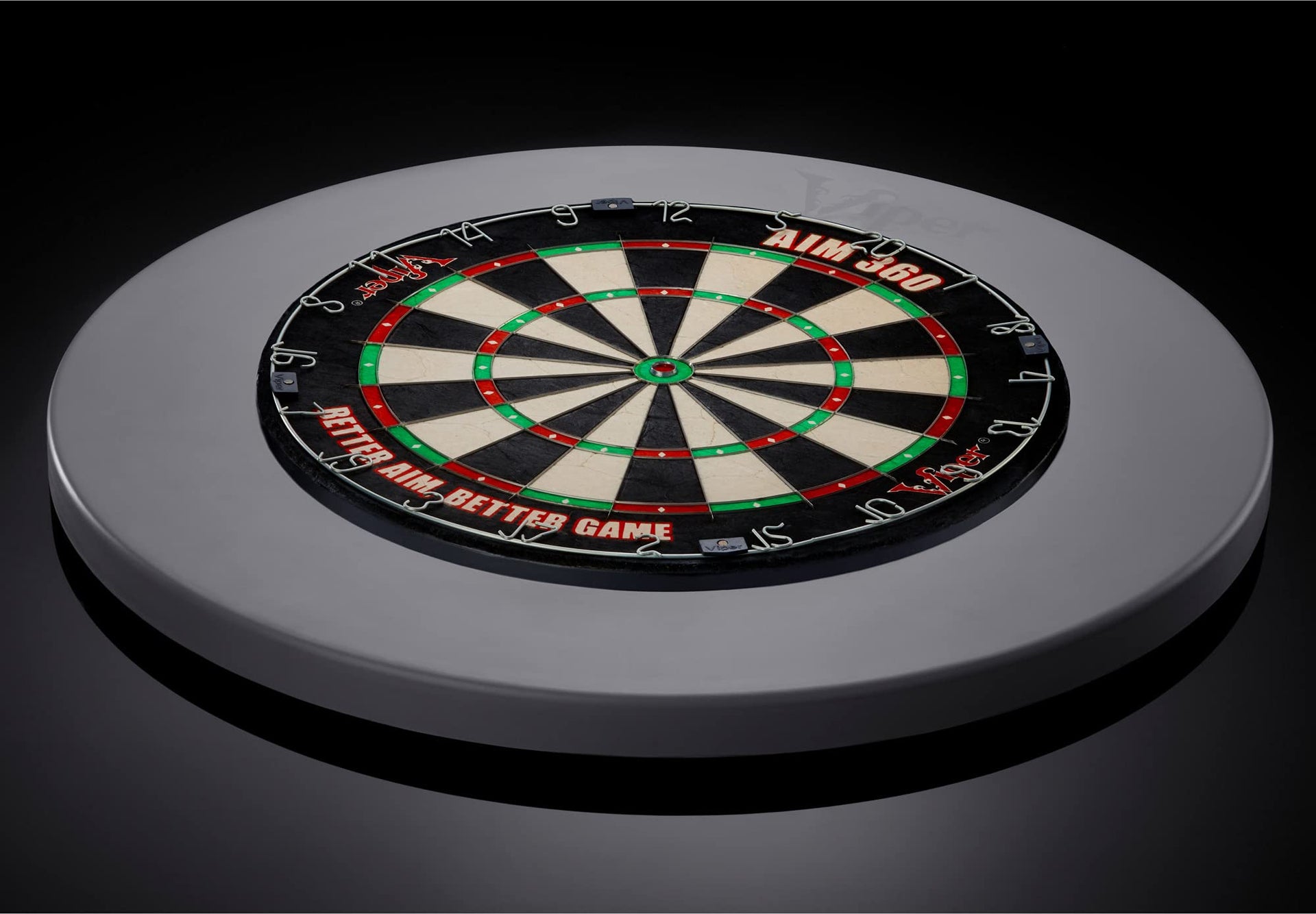 Protect your walls from errant dart throws with the Viper Guardian Dartboard Surround. This EVA Foam dart board surround will work with any regulation-sized 17.75 steel tip dart board and no tools are needed to set it up. Simply mount the Guardian Dartboard Surround to your favorite sisal dartboard and youll add 2.7 square feet of protection around your dartboard. This is great for games and practice that involve the outer segments of the dartboard. Youll be able to throw knowing that even if you miss, your walls will be safe.