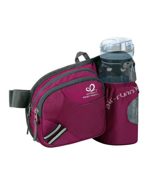 - Q: What is the capacity of the water bottle holder in the WATERFLY Fanny Pack? A: The adjustable water bottle holder can accommodate bottles up to 30 oz or 850 ml.