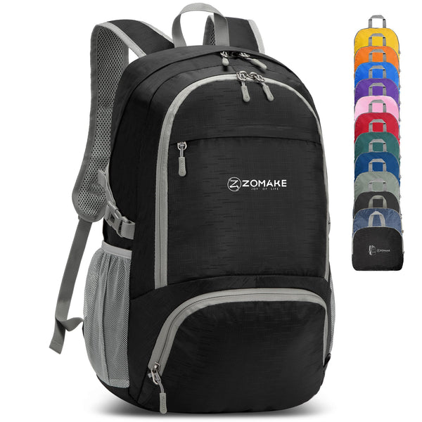 ZOMAKE Lightweight Packable Backpack 30L, Foldable Hiking Backpacks Water Resistant Compact Folding Daypack for Travel(Pure Blac