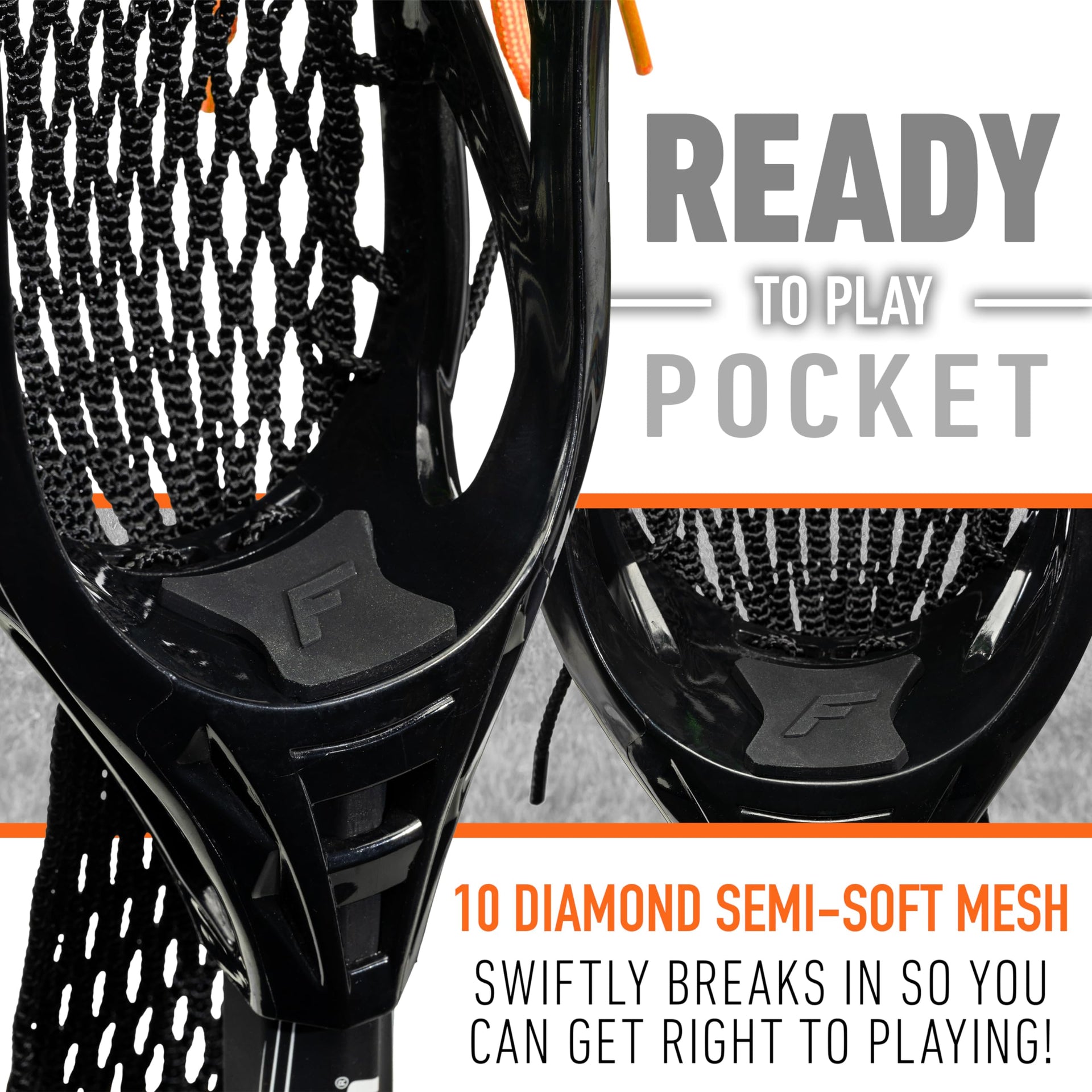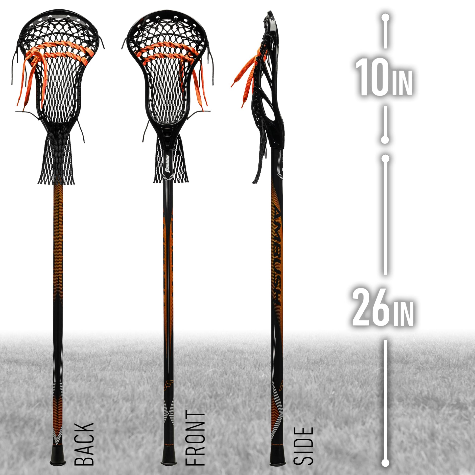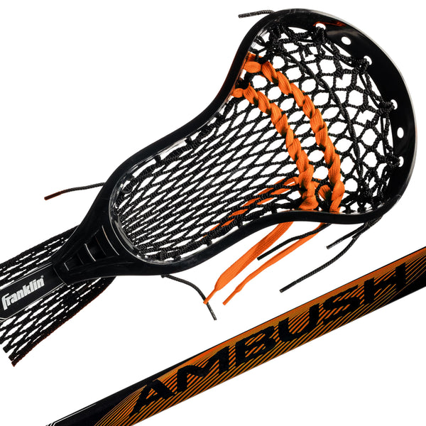 Franklin Sports Ambush Lacrosse Stick is a premium lacrosse stick made for the attack or midfielder position! It's a fully complete stick that is specifically made to develop the fundamental skills of the game while offering a premium design and feel. It's designed with a shaft length of 26'' and neo-grip surface texture which provides players with an unprecedented feel of the shaft to enhance cradling control and stability. It provides for easy hand adjustment for quick shots, and passes. If it rains it prevents hands from slipping! It's lightweight construction allows for quick agility and versatility in movement and play making. It's pocket features the standard 10 Diamond semi-soft mesh that swiftly breaks in so kids can get right to playing! This semi soft mesh also allows for a deeper pocket and more ball control when cradling! This stick includes both the head and shaft of the lacrosse stick. It will ship fully assembled and ready for play! Intended for use by beginner youth players as it has a thinner shaft diameter and length!