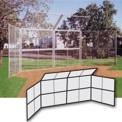 PLEASE NOTE: THIS ITEM CANNOT SHIP VIA 3-DAY DELIVERY.Assembled from factory prefabricated panels with 45 degree angle side wings bolted to 2 3/8'' O.D. pipe frames. This tough backstop resists vandalism and is priced substantially less than parts plus installation costs of standard models. The panels can be replaced or rescreened individually, making total rescreening unnecessary. Since the backstop will ship via truck, please allow 2-3 weeks for delivery. B>Please note that this item cannot be shipped internationally.