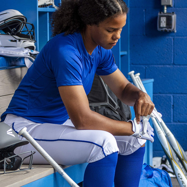 EastonAs ghost Fastpitch Batting gloves are specifically designed to give female athletes more performance at the plate These gloves feature a smooth goatskin leather palm and a Lycra back-of-hand fused with silicone for added structure while maintaining flexibility Flexible molded wrist strap with neoprene band and branded pull tab Same batting gloves worn by Easton Pros and Easton Elite college programs