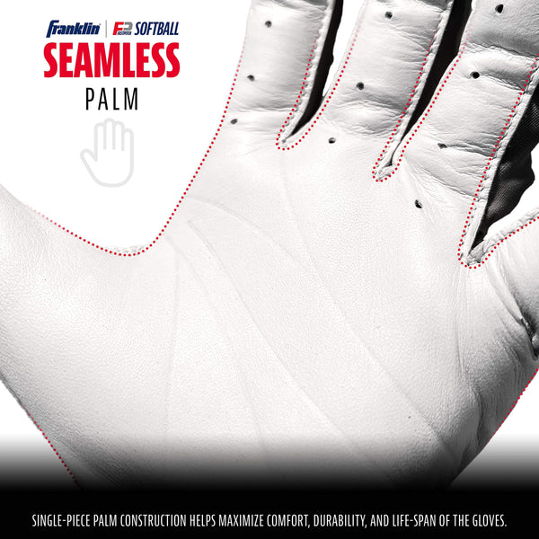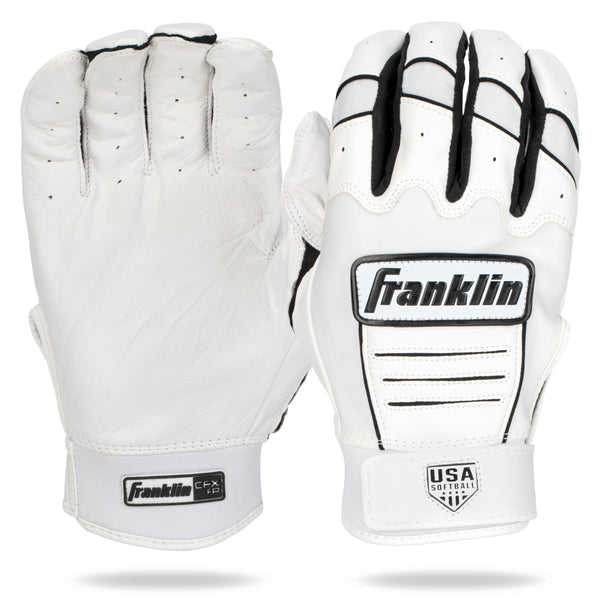 Franklin Sports is bringing its time-honored classic batting gloves to the world of faspitch softball and changing the game for good with the all-new CFX FP - USA. These are the first batting gloves from Franklin Sports to be specifically designed and built to fit the contours of the female hand for increased comfort and performance at the plate. Constructed with the same premium quality leather as our CFX Pro model, the CFX FP is designed to bring the same level of performance exhibited by our MLB pros to softball diamonds across the country. As the official batting glove of USA Softball, the CFX FP is made to play at the highest level with unmatched durability to last season after season. Bring your softball game to the next level today with the glove built for you. Change the game and grab your pair of CFX FP batting gloves today!