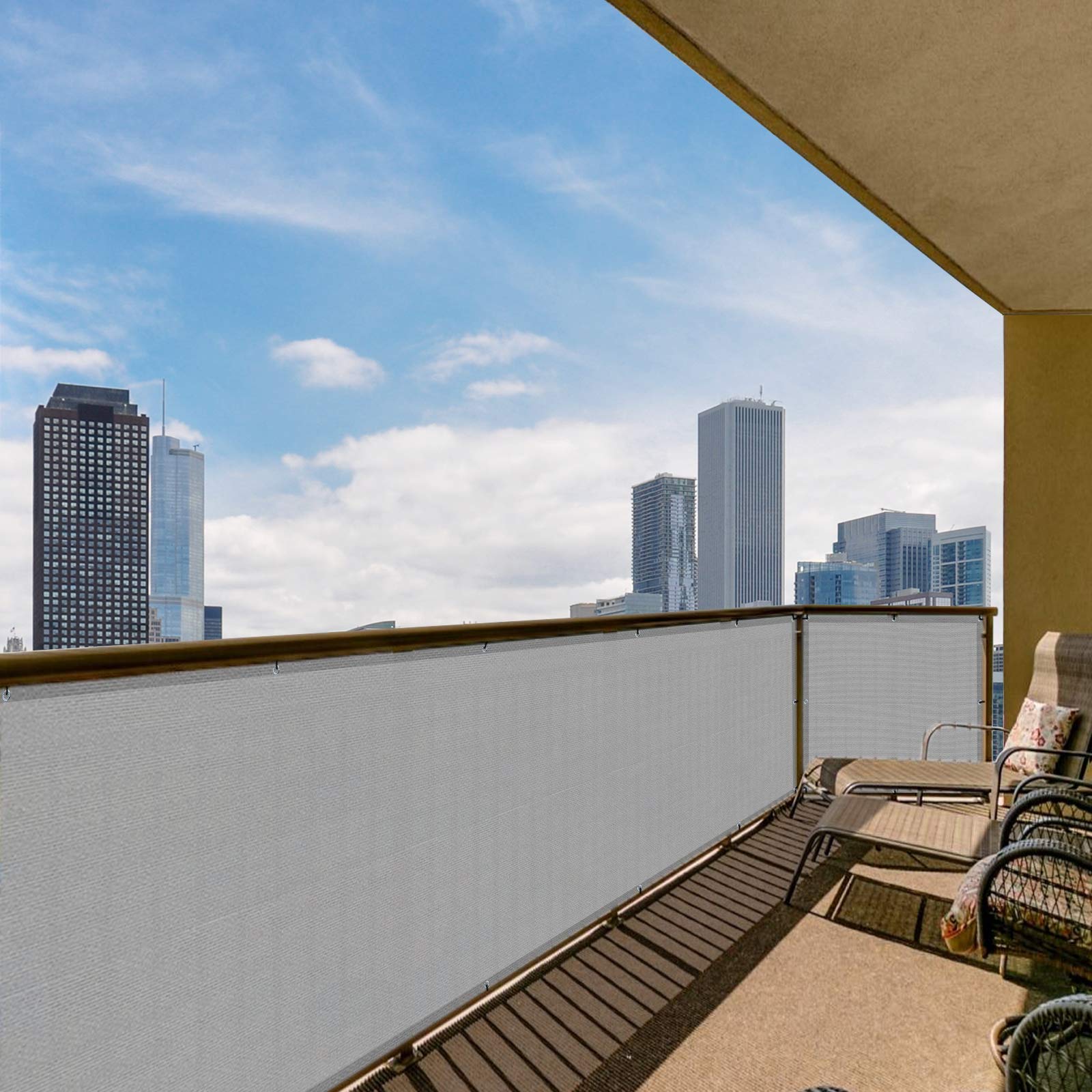 SUNLAX 3x10 Light grey Balcony Privacy Screen Fence Windscreen cover Fabric Shade Netting Mesh cloth with grommets UV Protection for Patio, Backyard, Porch, Railing Shield 90