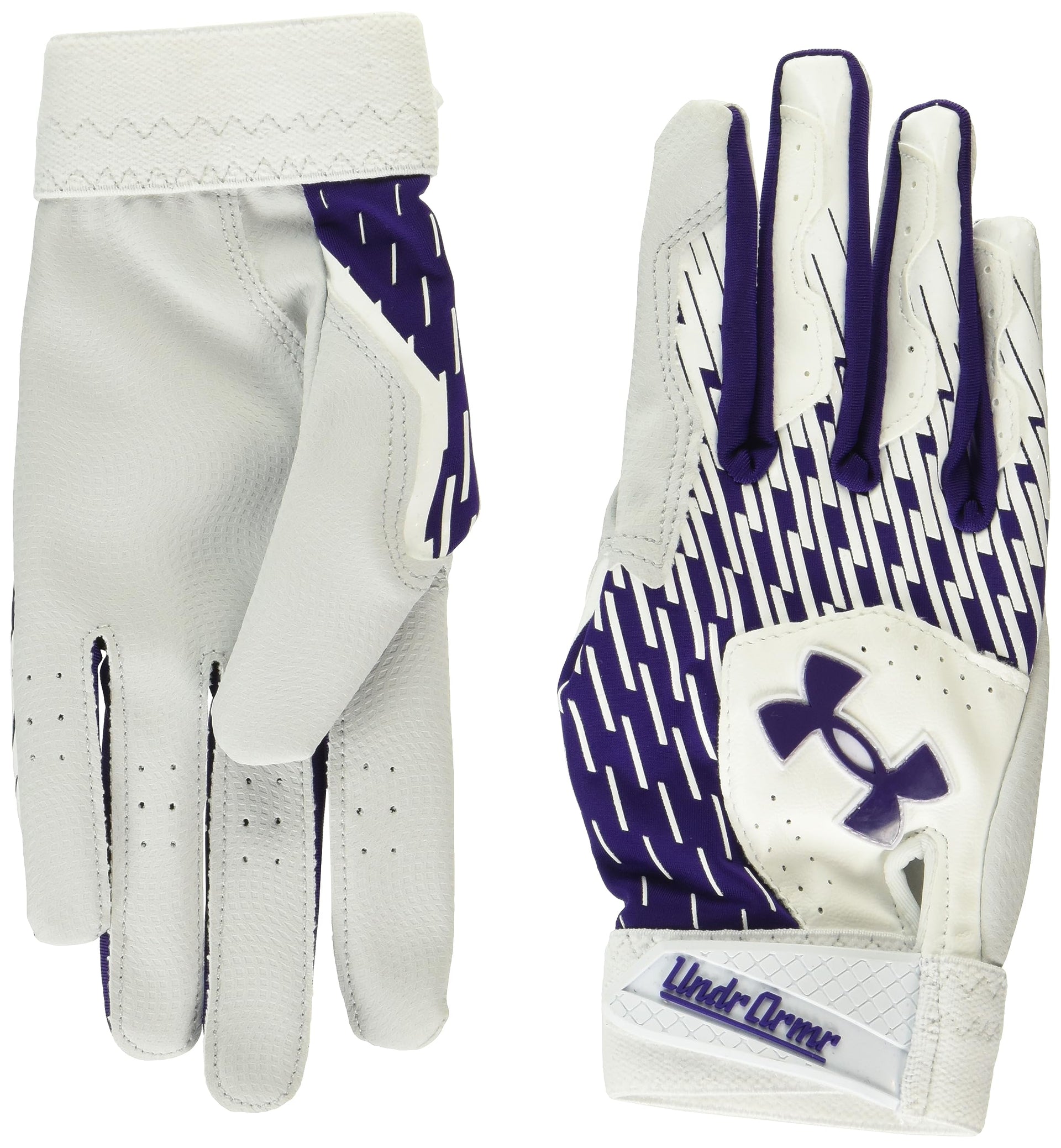 Under Armour Boys Youth Clean Up Baseball Gloves, (104) White/Purple/Purple, Medium