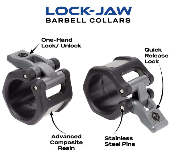 50mm designed for all lifts including Bumper Plates, Olympic-Style and Powerlifting The lightest of the Lock-Jaw Olympic collar lineup, the HEX features a patented quick-locking latch and maximum gripping surface area Proprietary dual compound construction and unique design makes HEX extremely durable but also very lightweight Holds plates secure and protects bar finish