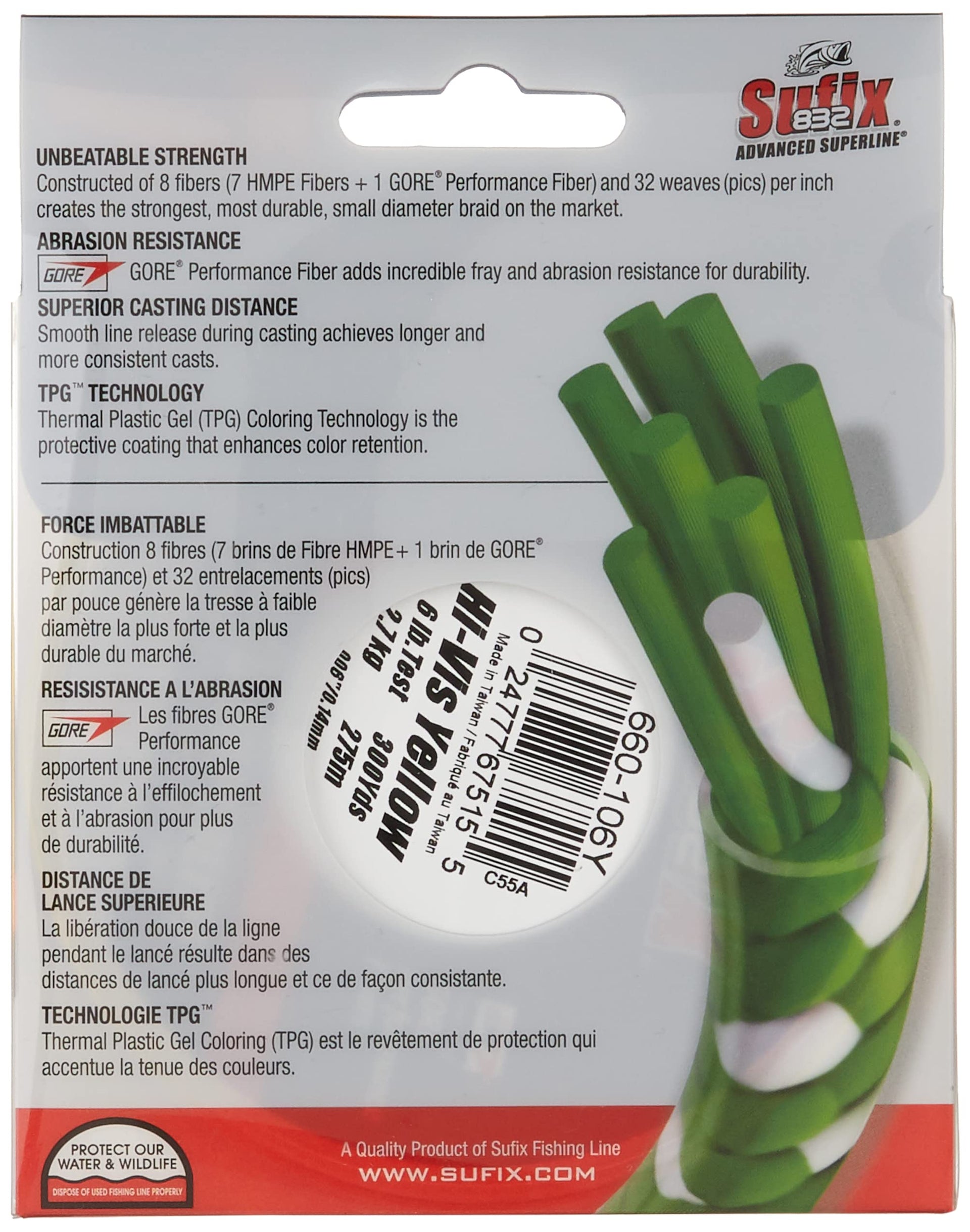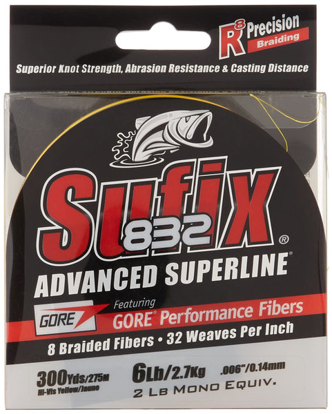 Sufix 832 Advanced Superline Braid, Hi-Vis Yellow, 6-Pound/300-Yard Spool (660-106Y)