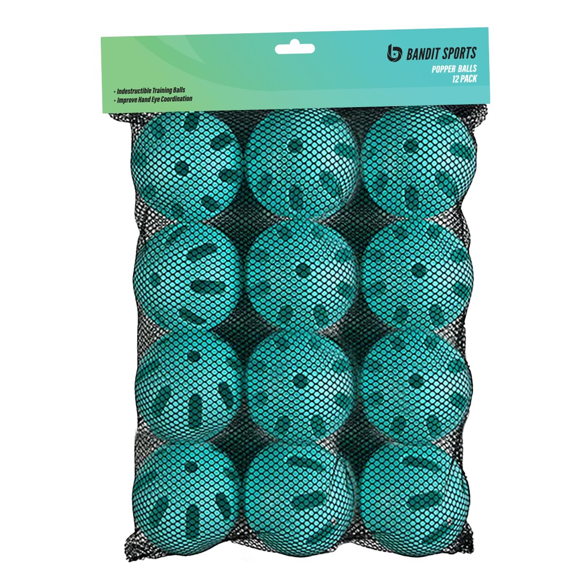 Introducing Bandit Sports Popper Plastic Baseballs, the ultimate choice for baseball training. These Popper balls are made specifically to go with your Tee Popper! Made of impact resistant and rebounding material, these practice baseballs provide the perfect balance of durability and performance. With a pack of 12 baseball training balls, youll have plenty of balls to enhance your hitting skills. Whether youre playing baseball, tball, or softball, these small balls are designed to deliver exceptional performance and be quite durrable. Get your hands on the Bandit Sports Popper Plastic Baseballs and take your practice sessions to the next level. Can be used solo or with our Tee Popper Batting Practice Machine