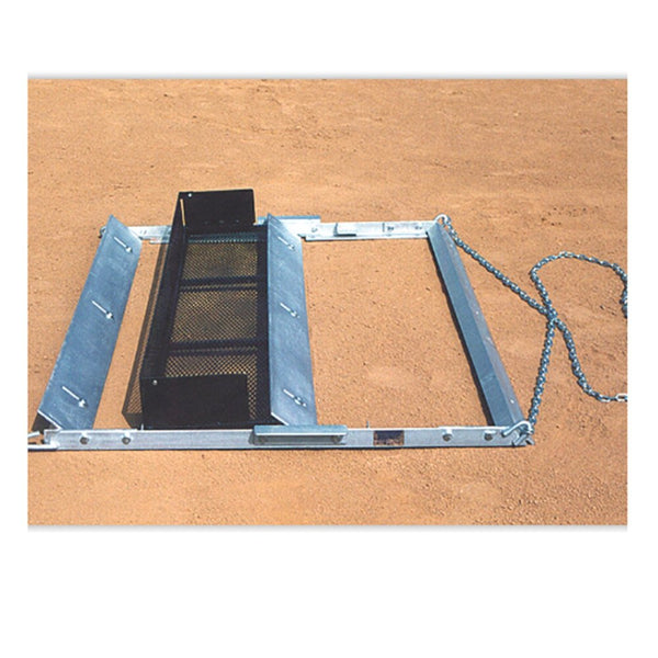 Here's the ultimate for grooming the surface of playing fields: the Cut N' Level Drag. It features flat steel cutting blades and a screen for rock removal. The cutting blades are slotted and attached to the main frame with bolts, allowing the operator to adjust the blades for the desired depth of cut. Used in routine maintenance, the Cut-N-Level Drag can be used for rock removal, smoothing and leveling the field as the need arises, saving hundreds of man-hours normally needed to do these jobs.