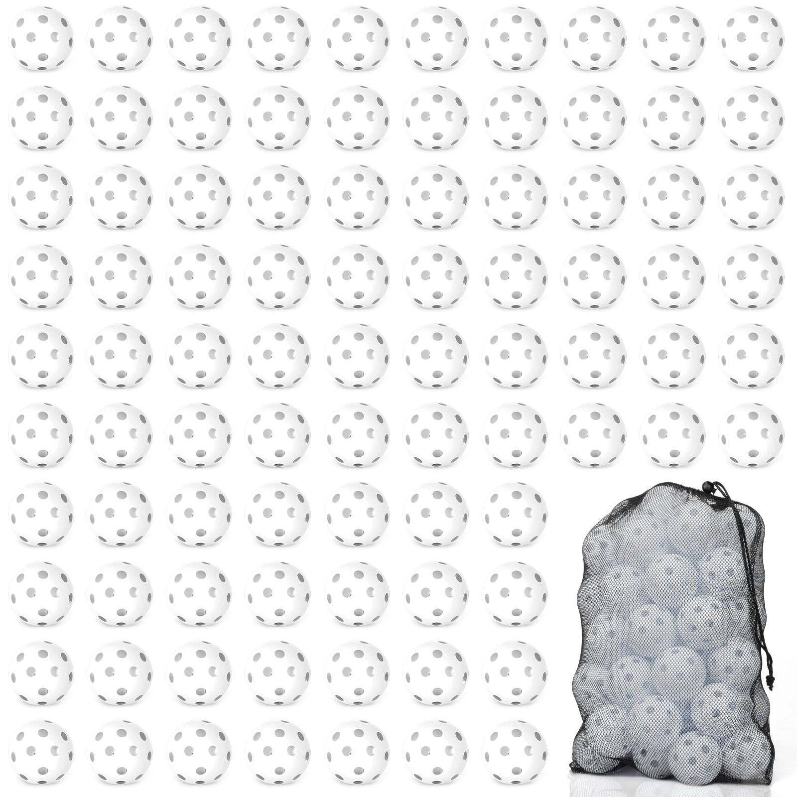 Coopay 100 Pack Baseball Practice Balls Plastic Training Balls Lightweight Hollow Softballs with a Drawstring Bag for Hitting, B