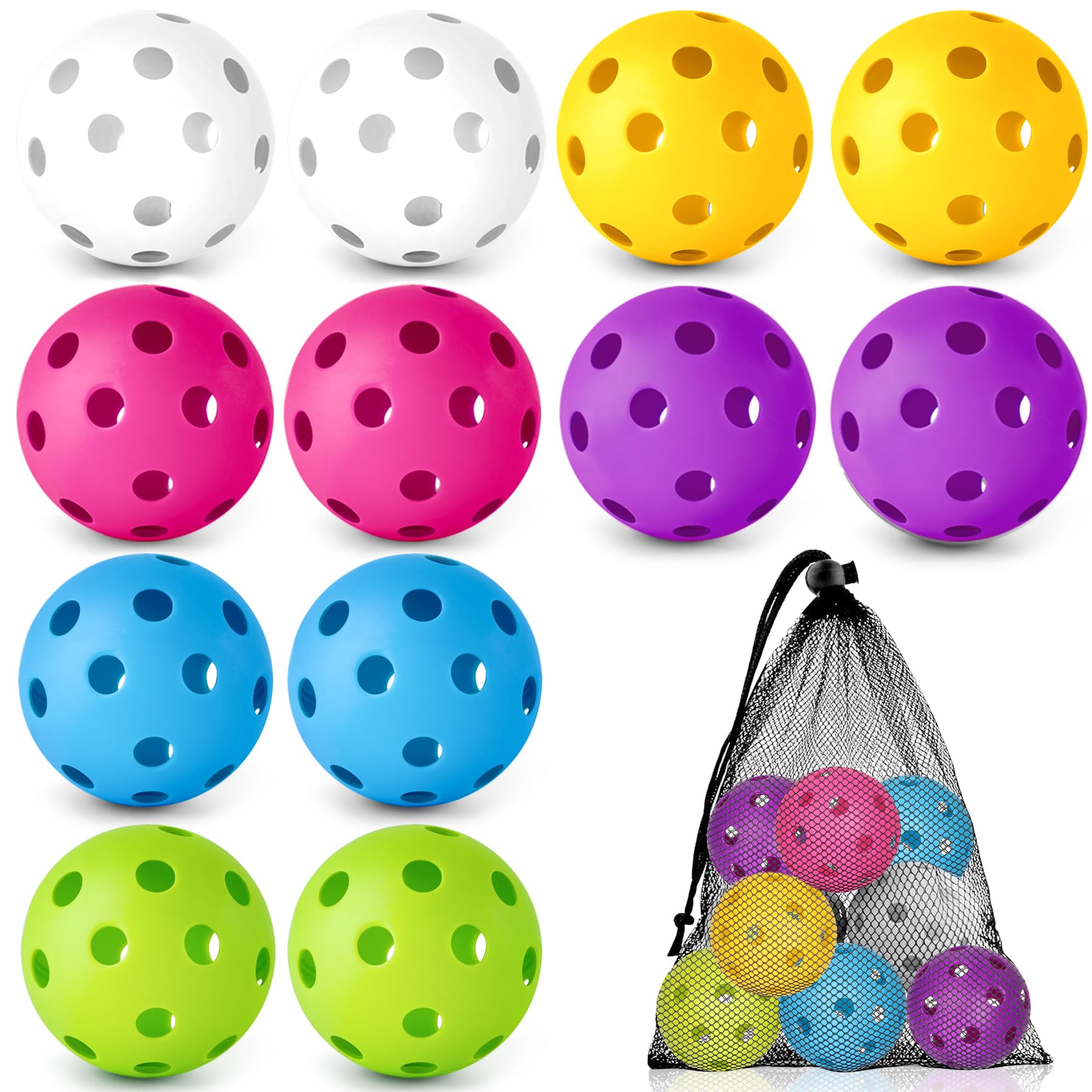 Coopay 12 Pack Baseball Practice Balls Plastic Training Balls Lightweight Hollow Softballs with a Drawstring Bag for Hitting, Ba