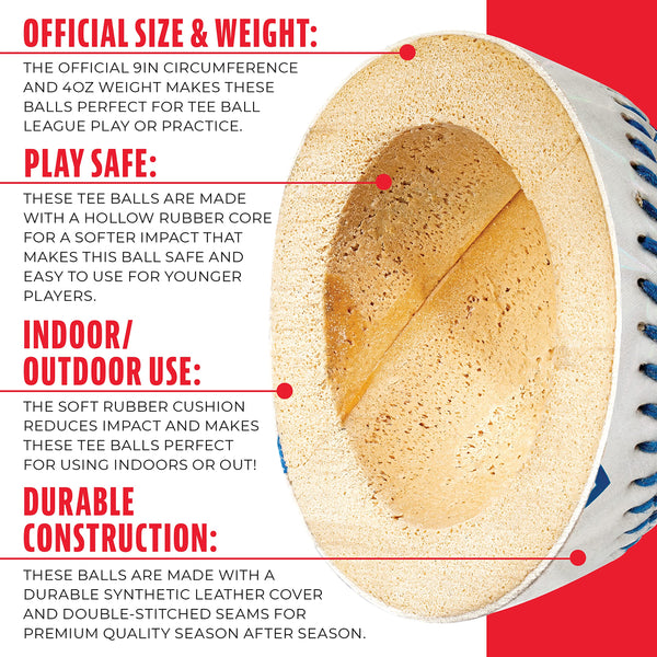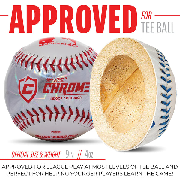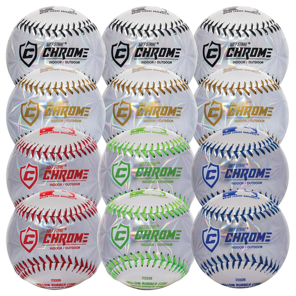 The Franklin Sports Chrome Soft Strike Teeballs feature a dynamic chrome colored design for maximum visibility. These teeballs feature a synthetic cover for durability and a solid rubber sponge core for teeball use. Available in multiple colors!