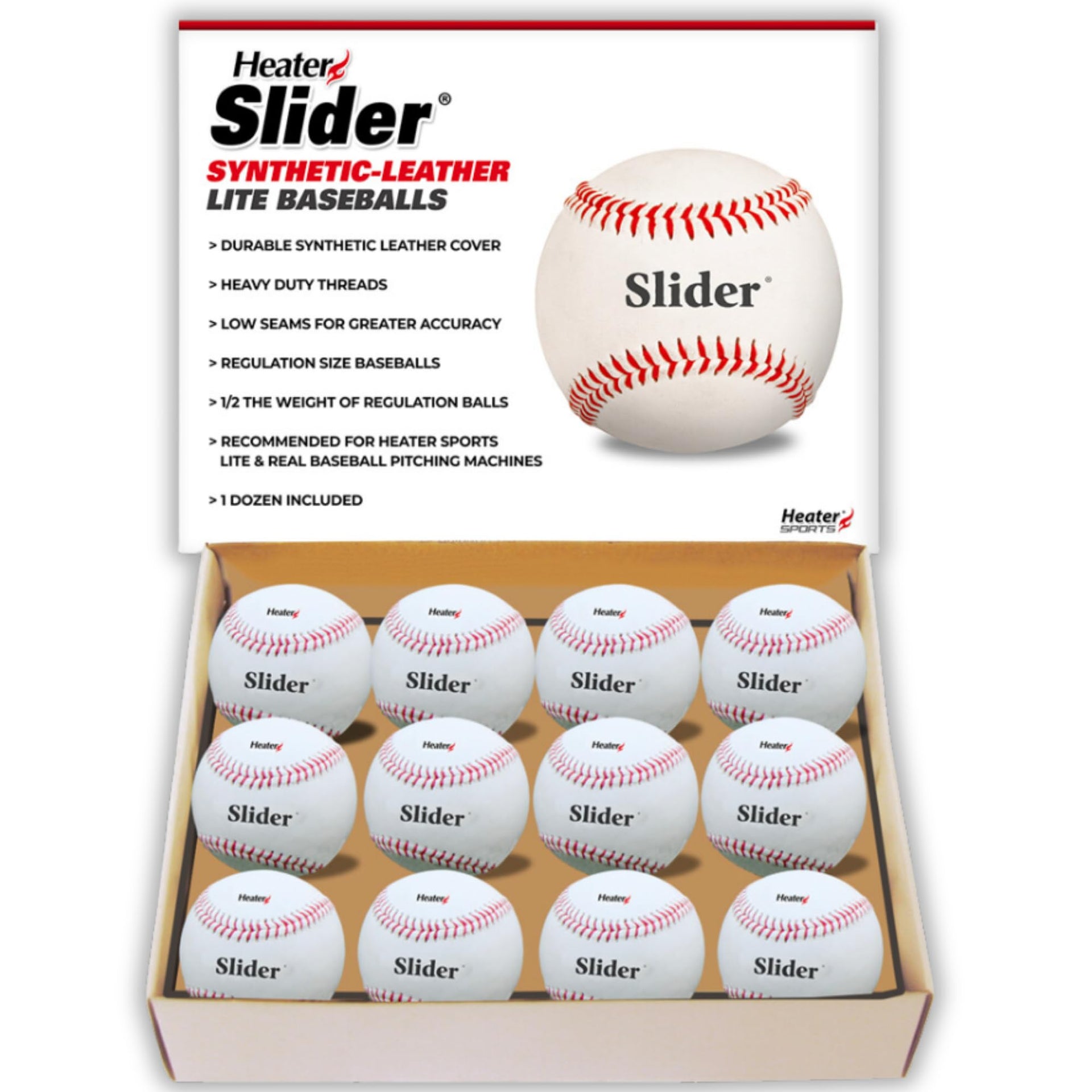 The Slider Lite pitching machine baseballs are and ideal add-on for your Trend Sports Slider Lite Pitching Machine. Synthetic leather cover design make balls realistic to simulate game conditions. One Dozen.