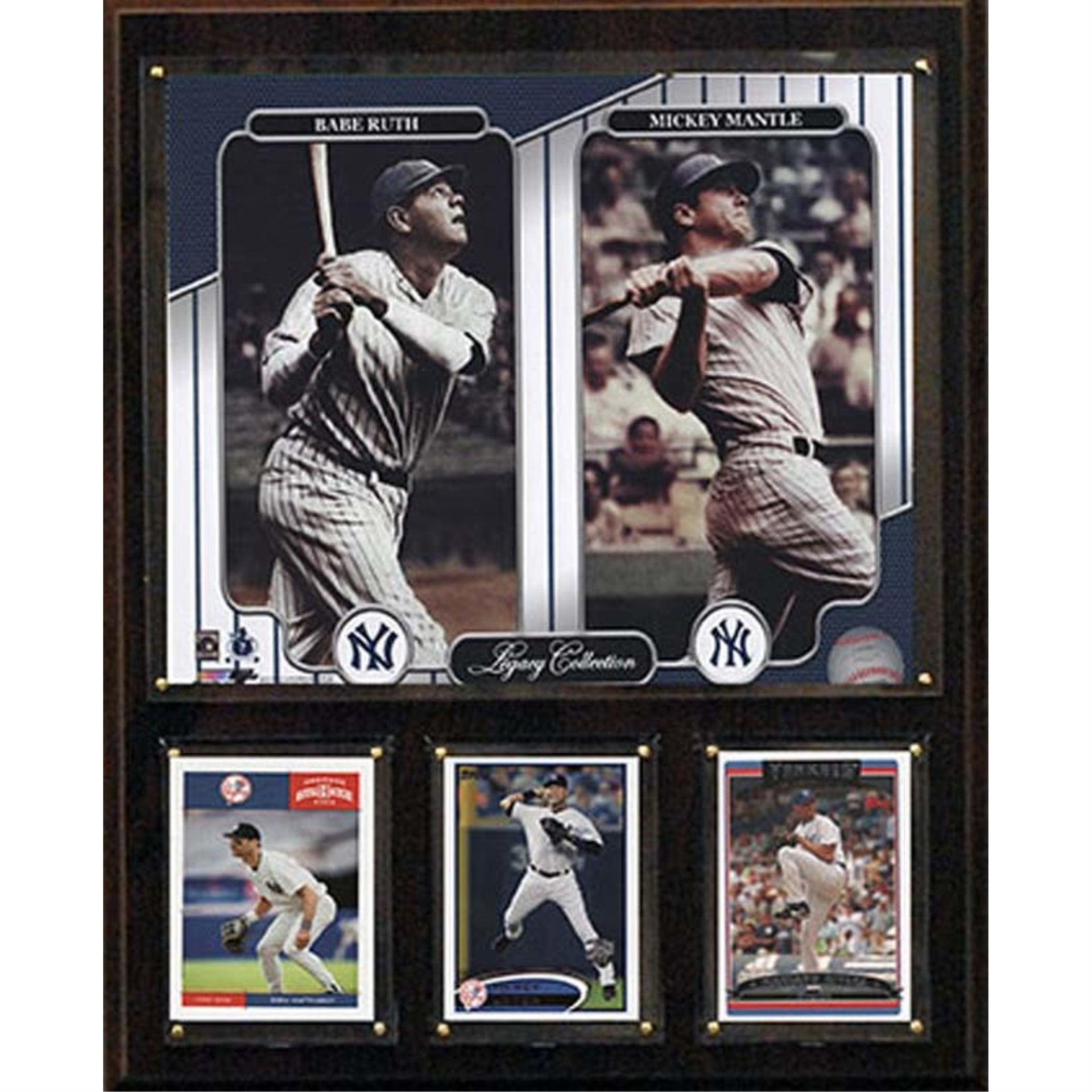 - Q: What does the plaque include? A: The plaque features a licensed 8 x 10 inch photo of Babe Ruth and Mickey Mantle, along with three officially licensed trading cards of Yankees legacy stars.