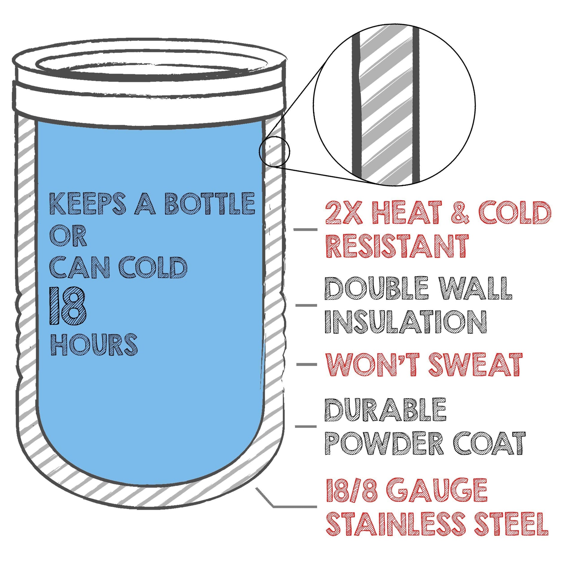 Stainless Steel Polar camel Beverage Holders feature double-wall, vacuum insulation They are heat and cold resistant and hold cans and bottles Simply screw off the rubber top and place the beverage insideKEY FEATURES:Keeps Beverages Hot or cold for HoursDouble Wall 188 Stainless SteelVacuum InsulationHolds 12 oz can, 16 oz can, or 12 oz Bottle Screw-Offer Rubber Top Fits in Standard Sized cup HoldersPowder coatedBPA Free click Add to cart to order your 12 oz Stainless Steel Double Wall Vacuum Insulated can cooler today