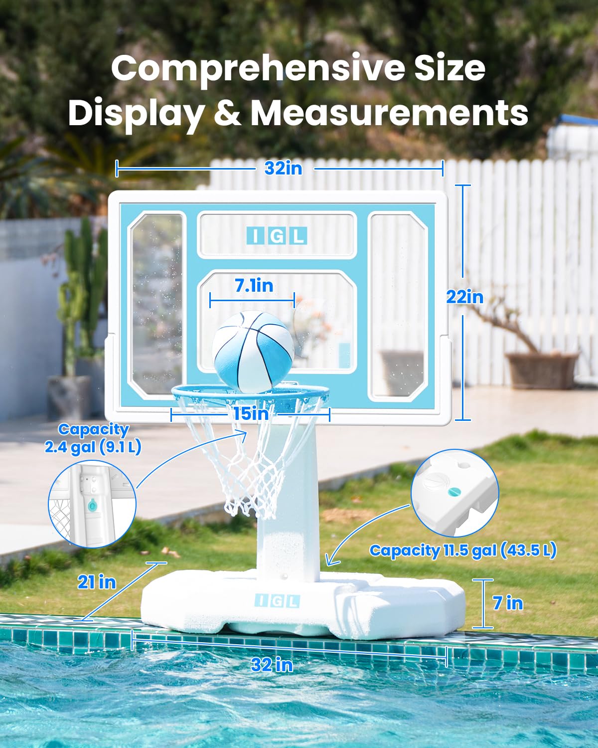 Igl Dunksplash Elite Pool Basketball Hoop, Swimming Pool Basketball Hoop Poolside With 32 In Pc Backboard, Stainless Steel Rim P