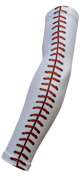 Sportsfarm New! Moisture Wicking Compression Arm Sleeve (White Baseball Stitches, Youth Medium)