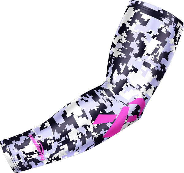 COOLOMG Breast cancer arm sleeve football baseball pink ribbon compression sleeve gray M