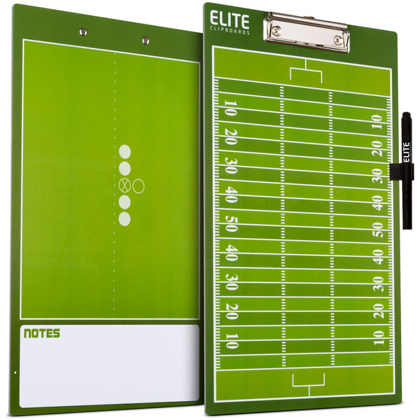 - Q: Is the clipboard double-sided? A: Yes, the Elite Clipboard features a full-color, double-sided design that allows coaches to clearly illustrate plays and strategies.