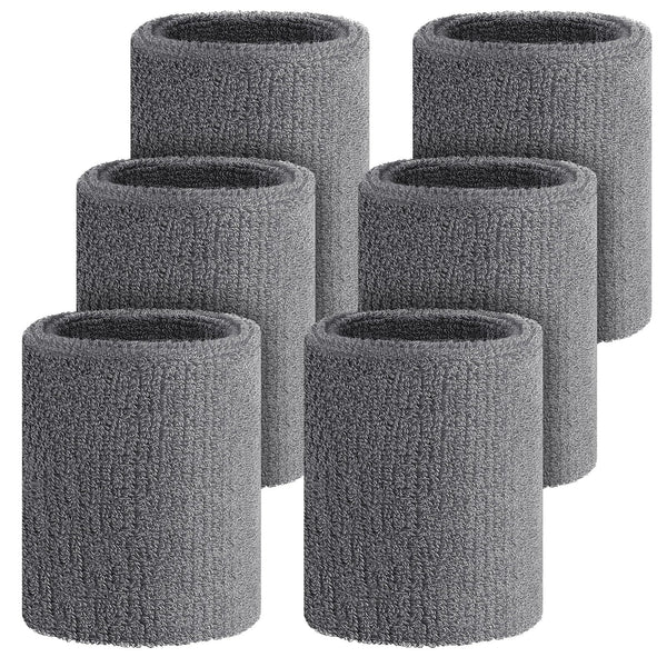 Wettarn 6 Pcs 4 Inch Gray Cotton Blend Wristbands for Sports Hiking Cycling Tennis Gymnastics Basketball Football Running, Athle