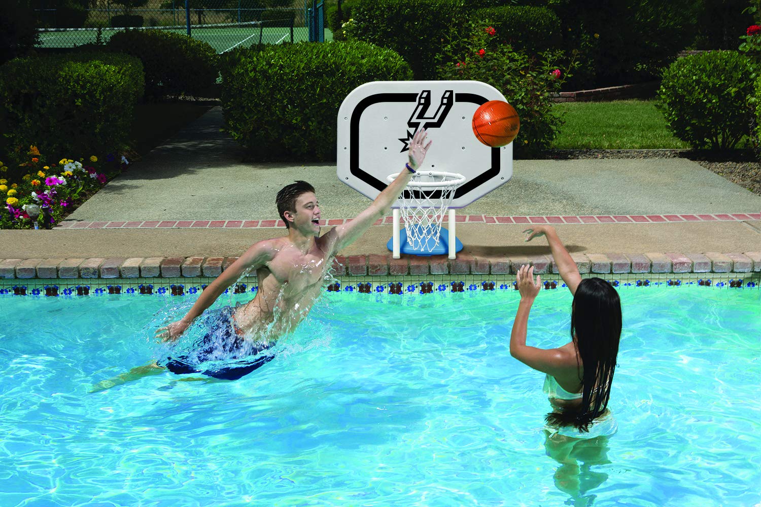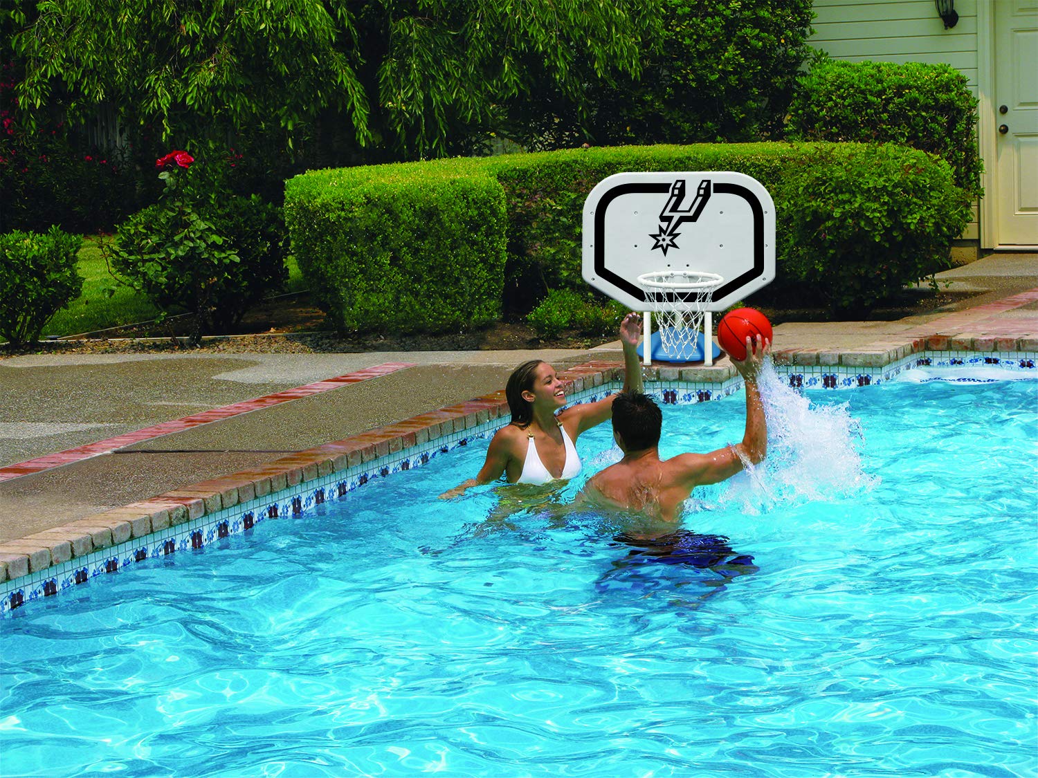 Product DescriptionFeaturing your favorite NBA team, the Pro-Rebounder style poolside basketball game is perfect for basketball enthusiasts or novices alike. Durable all-weather materials include hoop, net, 8.5'' diameter game ball, and sand or water-filled weighted base for secure poolside use.From the ManufacturerSince 1958, Poolmaster has been a leading manufacturer of aftermarket pool and spa products with an unwavering commitment to quality, service and reliability. Poolmaster offers products across six different product lines- Backyard and Decor, Inflatables, Floats, Maintenance, Swim and Dive, and Toys and Games. Poolmaster - We Make Water Fun!