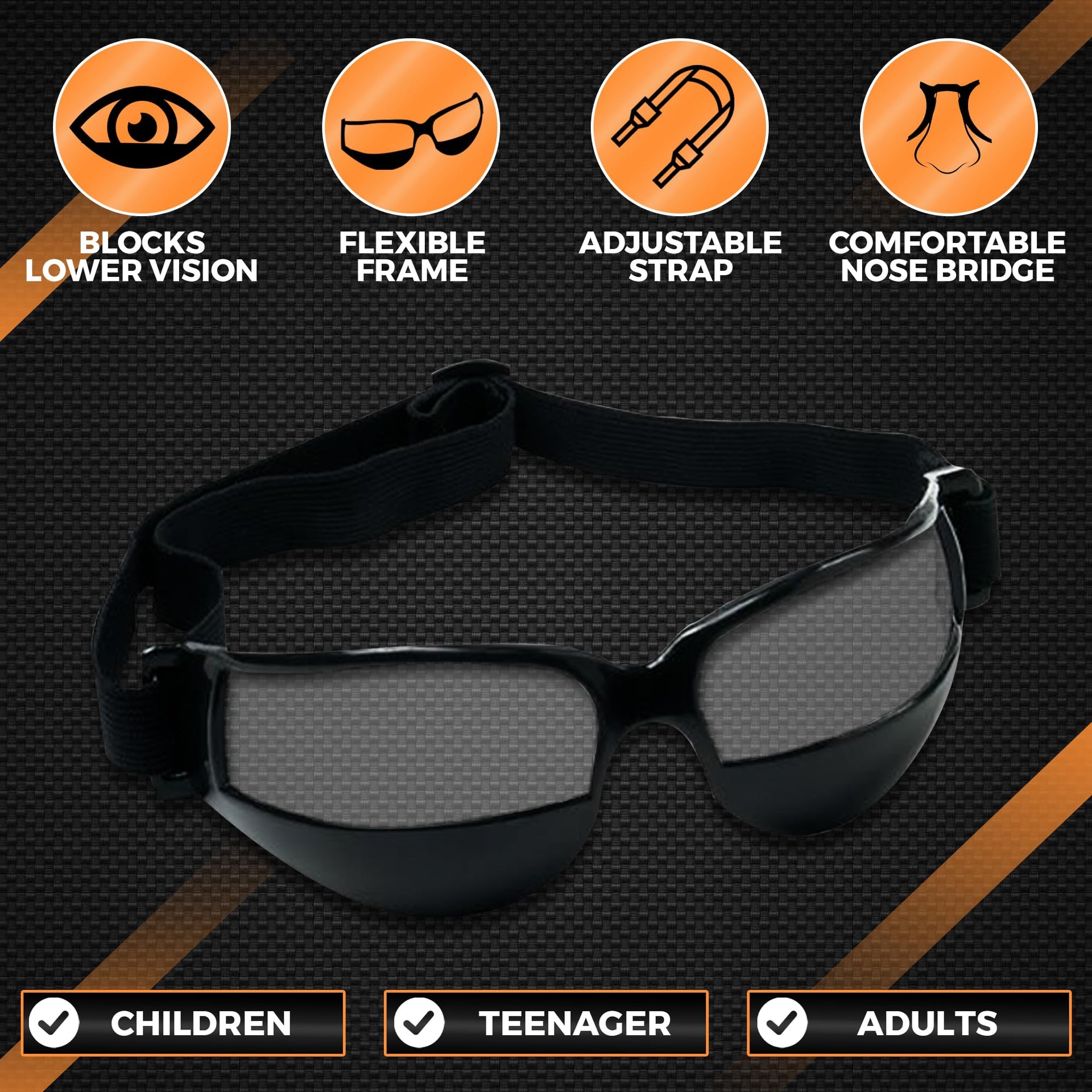 Dribble Specs - Dribble Training AidRestricts downward vision to force a player to learn dribbling and handling by feel, instead of sight. A player can then find the open man and focus on the game instead of looking at the ball they are handling.