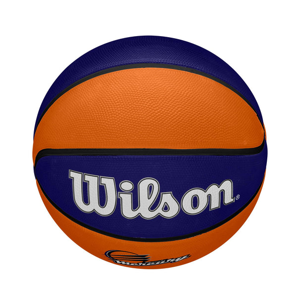 Put your team spirit on display with the Wilson WNBA Tribute Basketball. The cover features your teams logo and team colors. The performance cover provides grip even on the roughest surfaces. Inflation retention lining creates longer lasting air retention with this ball designed for ultimate outdoor durability.