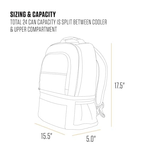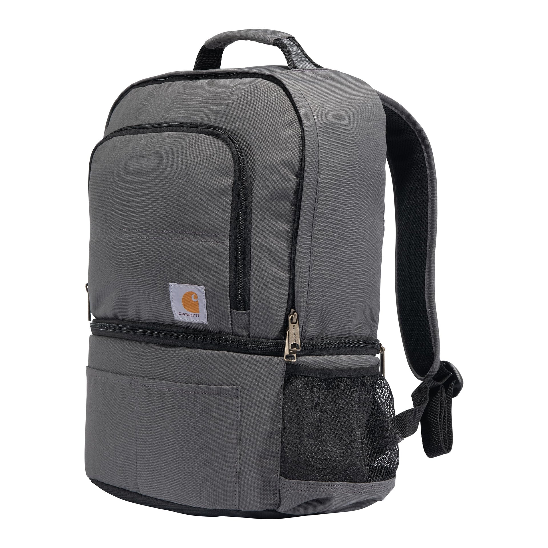 The Carhartt Insulated 24 Can Two Compartment Cooler Backpack is the ultimate 2-in-1 solution. Combining a fully-insulated cooler base with a spacious main compartment, this backpack with cooler compartment keeps food and drinks cold for over 24 hours. Perfect for beach trips, camping, picnics, tailgates, festivals, and job sites, it offers the convenience of a cooler backpack for men and cooler backpack for women. The cooler compartment holds up to 12 cans, while the main compartment stores clothes, non-perishable food, and gear. A front zippered pocket with key fob keeps essentials like your keys and phone secure, while mesh side pockets hold water bottles and accessories. Made from durable poly with Rain Defender water-repellent finish, this insulated backpack is built for rugged use.