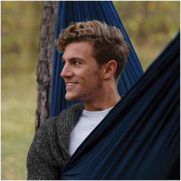 This hammock is a great addition to any base camp, but it's also the perfect companion when attending festivals, at the cabin, or anywhere you travel around the world. The whole hammock fits inside the attached stuff sack which also doubles as a pocket for small items. Features a flat pocket on the side of the hammock for storing large items like a book, tablet, or water bottle. Includes straps and carabiners for secure hanging from a structure or tree.