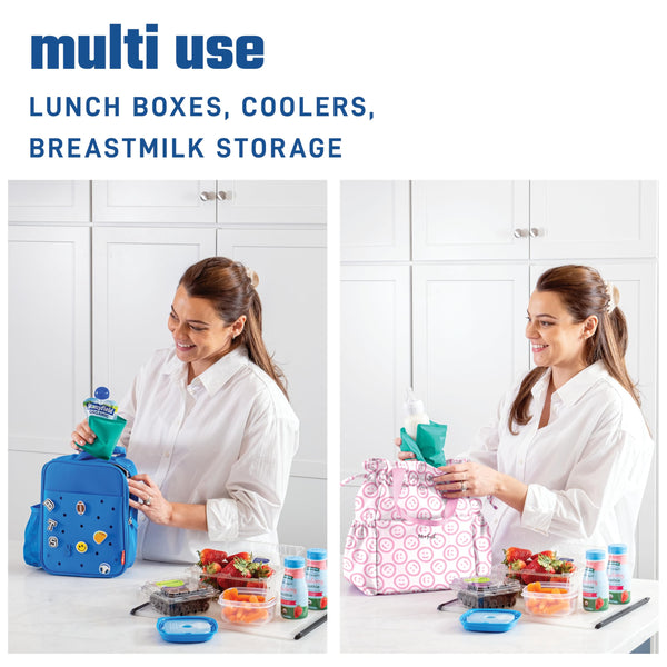 Cool Coolers 2 Pack Soft Ice for Lunch Bags, Flexible Stretch Nylon, Durable, Reusable Lunch Box Ice Packs, Ice Packs for Lunch Boxes, Reusable Freezer Packs, Easy to Clean, by Fit & Fresh, Teal